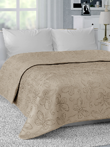 Покрывало 200х240см DE'NASTIA Бабочки двустороннее бежевое 100%полиэстер
