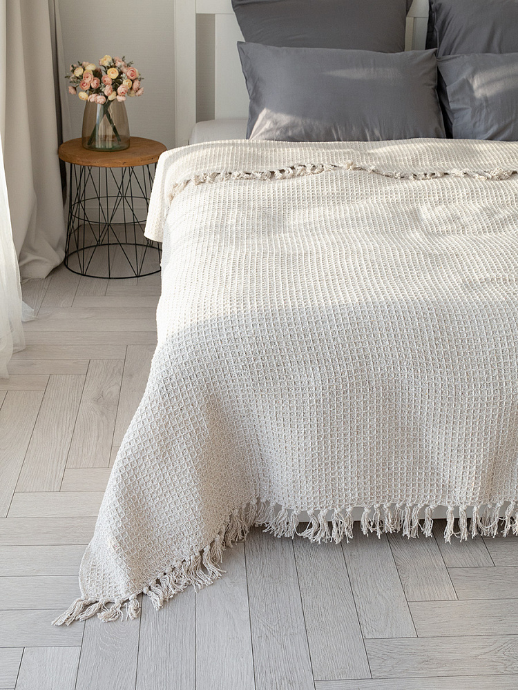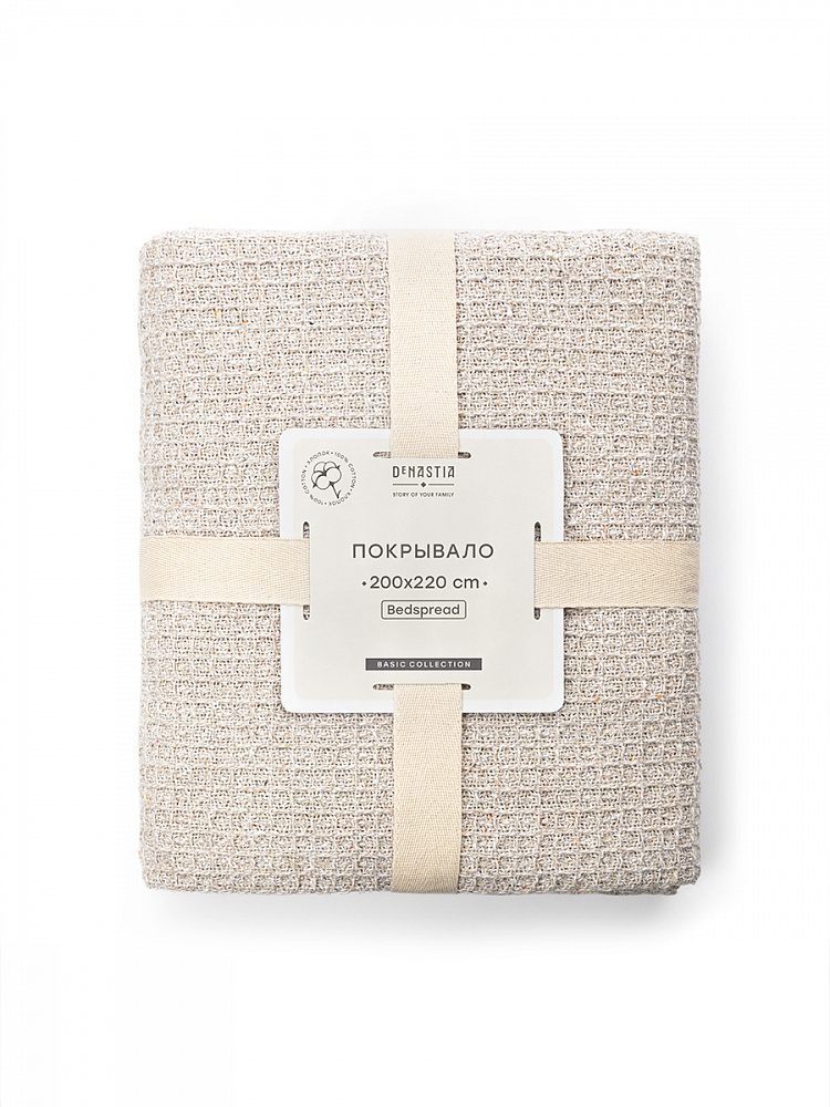 Покрывало 200x220см DE'NASTIA бежевый вафельное меланж хлопок