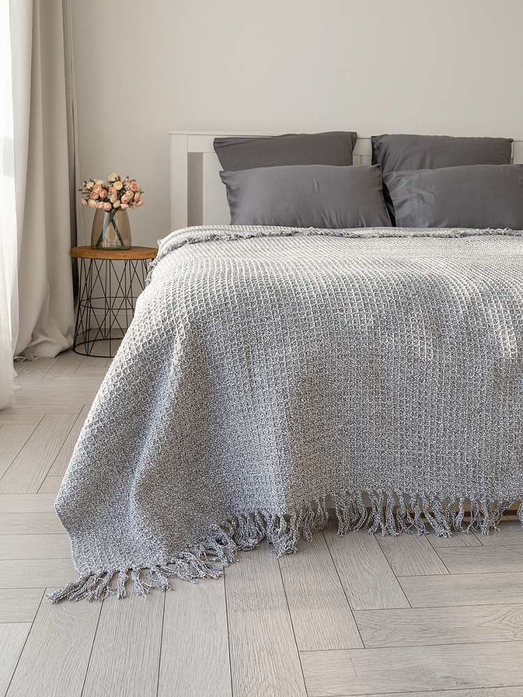 Покрывало 200x220см DE'NASTIA серый вафельное меланж хлопок