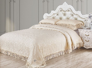 Покрывало с отделкой из бахромы с плетением выполнено из уникальной хлопковой ткани с жаккардовым плетением.