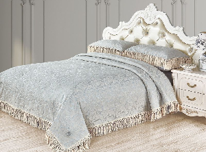 Покрывало с отделкой из бахромы с плетением выполнено из уникальной хлопковой ткани с жаккардовым плетением.