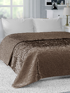 Покрывало 240х260см DE'NASTIA Палермо двустороннее атласное/матовое кофейное 100% полиэстер