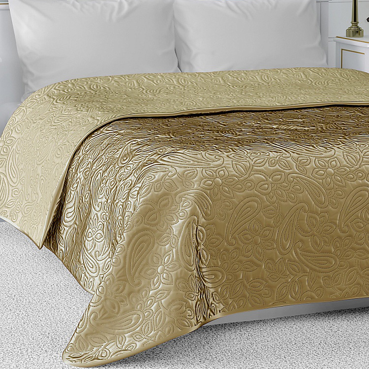 Покрывало 200х240см DE'NASTIA Палермо двустороннее атласное/матовое оливковое 100% полиэстер