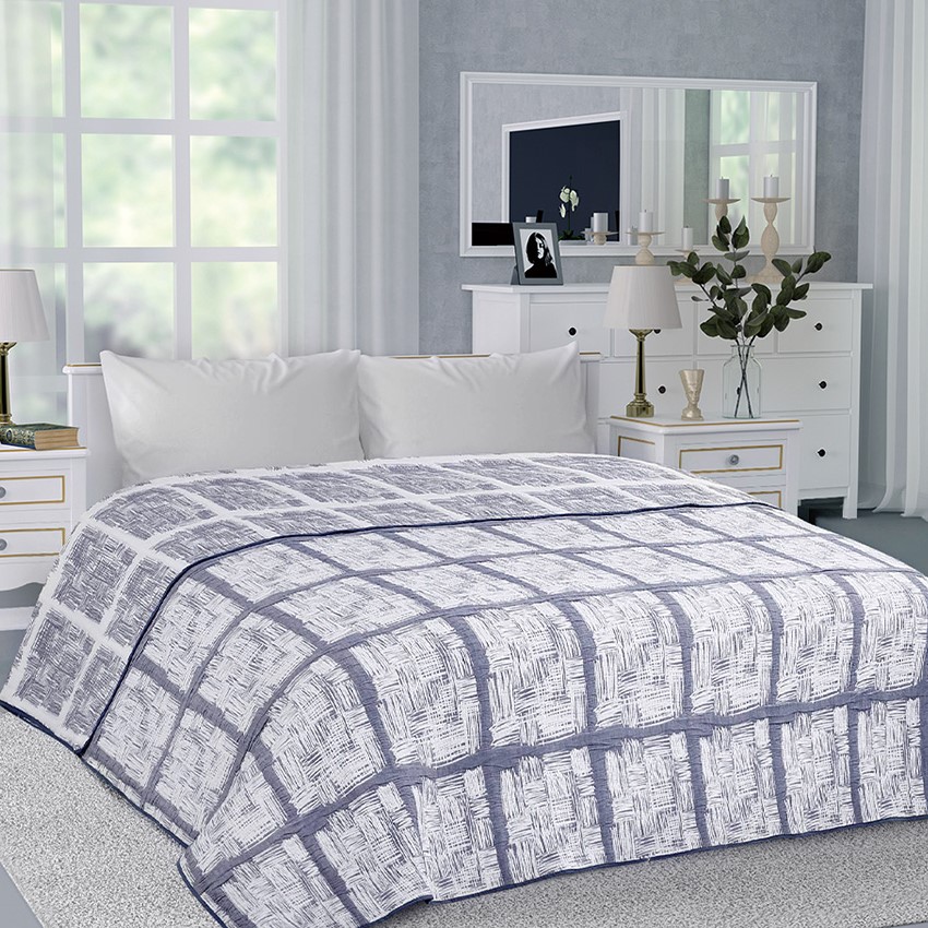 Покрывало 260x240см DE'NASTIA штрихи 3слоя синее жаккард 55%хлопок 45%полиэстер