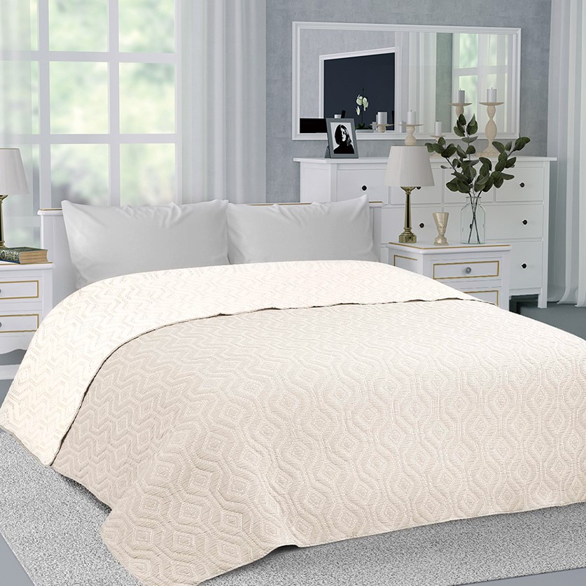 Покрывало 260x240см DE'NASTIA ромб со стежкой 3слоя молочное жаккард 55%хлопок 45%полиэстер