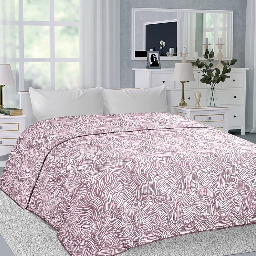 Покрывало 260x240см DE'NASTIA зебра 3слоя бордовое жаккард 55%хлопок 45%полиэстер