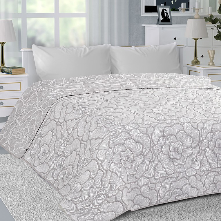 Покрывало 200х240см DE'NASTIA пион2 3слоя серое жаккард 55%хлопок 45%полиэстер