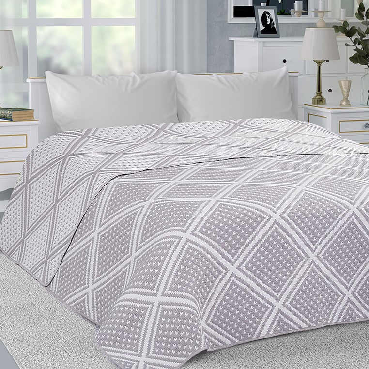 Покрывало 260x240см DE'NASTIA Ромб2 3слоя серое жаккард 55%хлопок 45%полиэстер