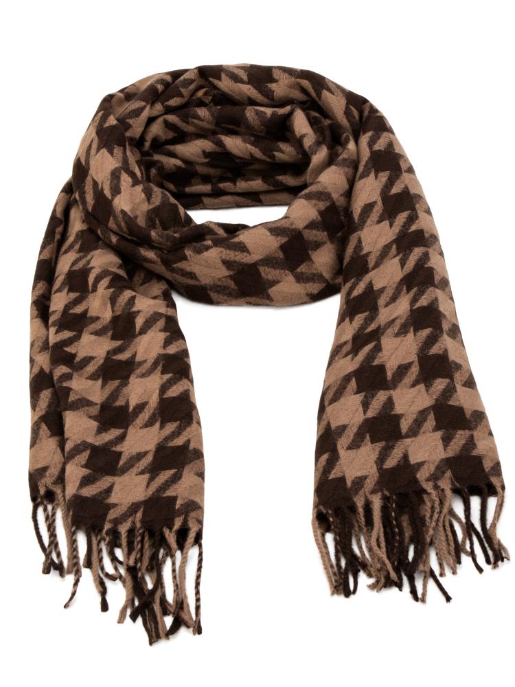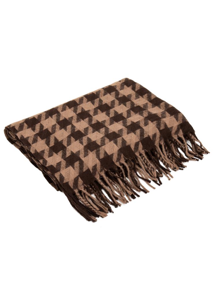 Палантин 70х180см орнамент гусиная лапка шоколаный полиэстер