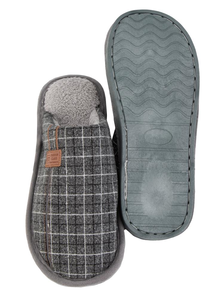 Тапочки домашние 45 мужские клетка серый полиэстер/ПВХ