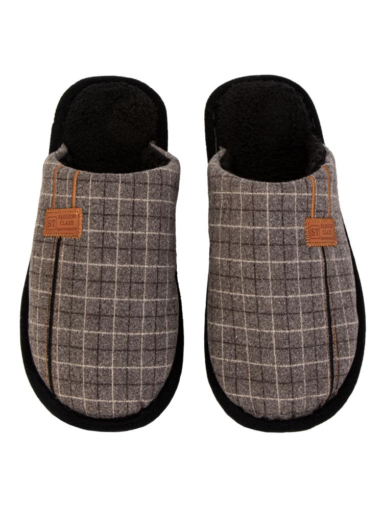 Тапочки домашние 45 мужские клетка коричневый полиэстер/ПВХ
