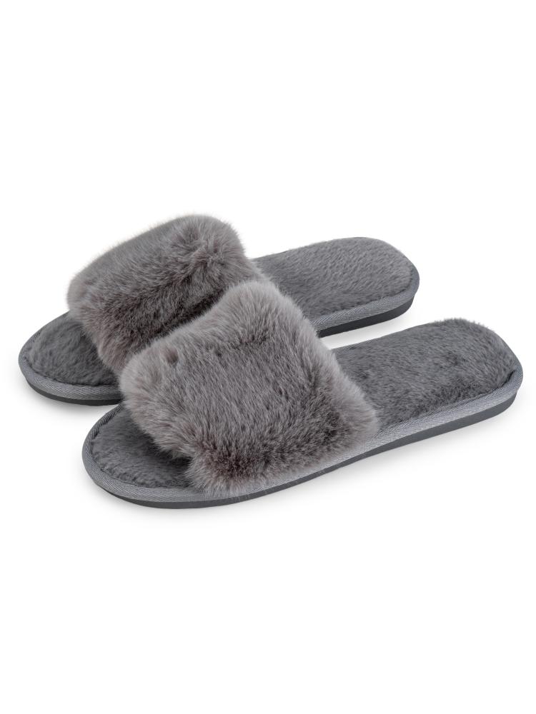 Тапочки домашние 36-37 женские меховые открытые серый полиэстер/ПВХ