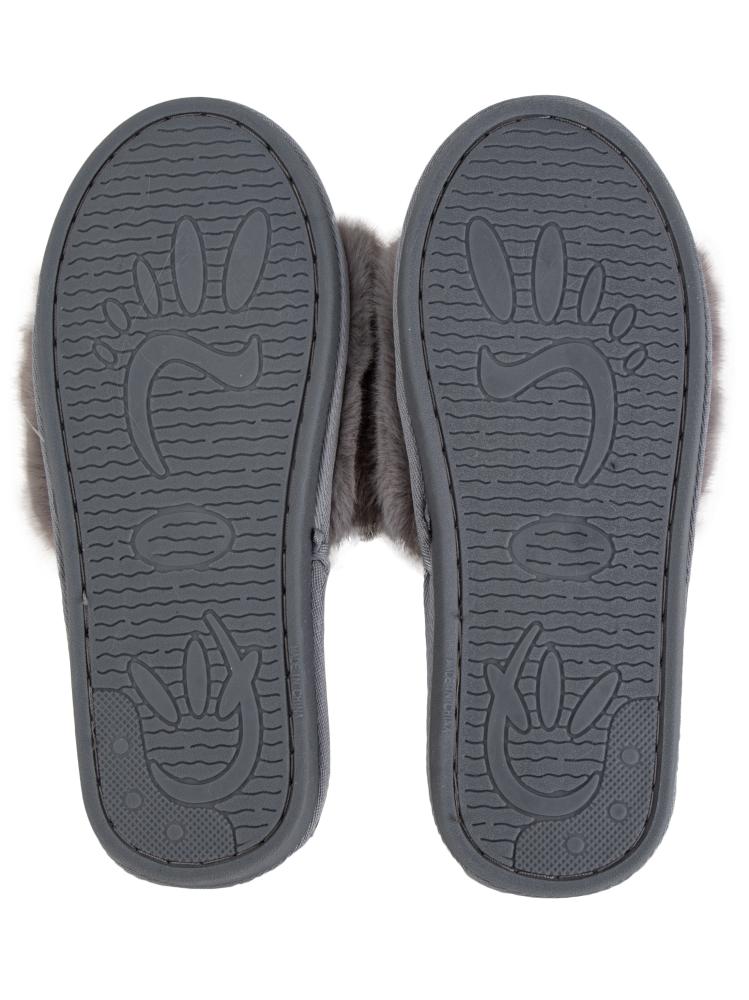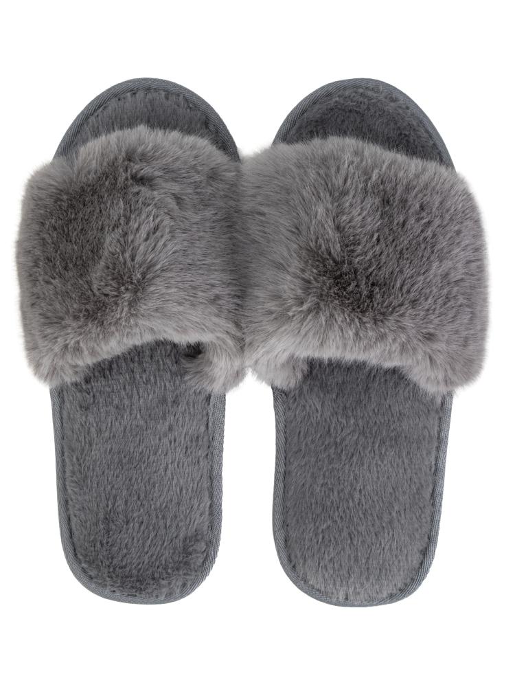 Тапочки домашние 38-39 женские меховые открытые серый полиэстер/ПВХ