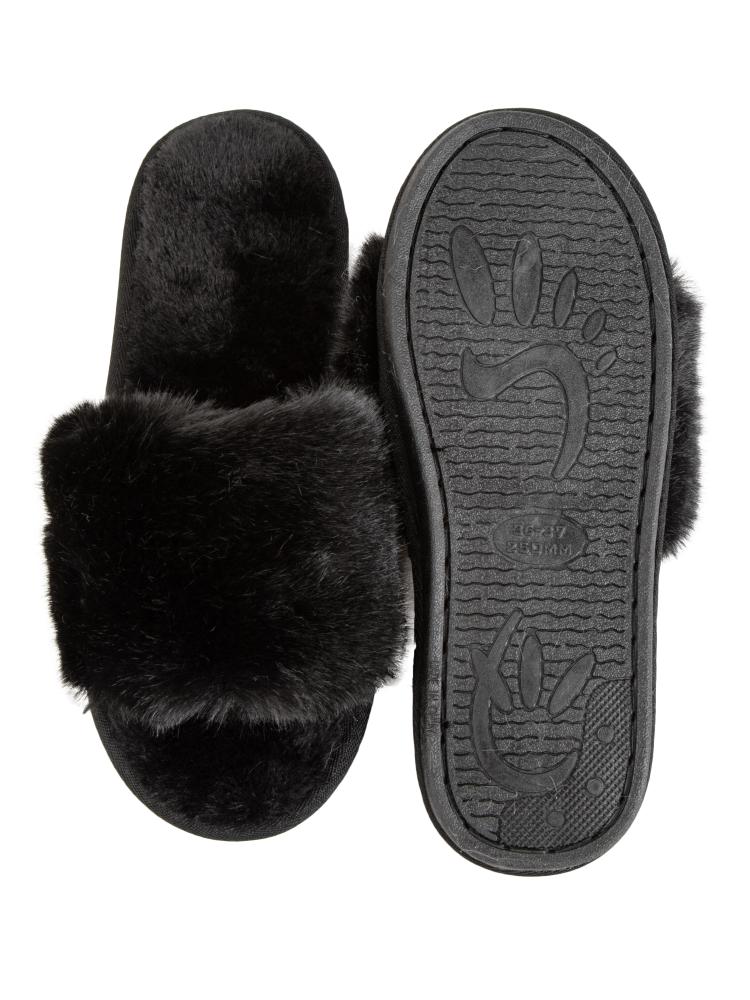 Тапочки домашние 36-37 женские меховые открытые черный полиэстер/ПВХ