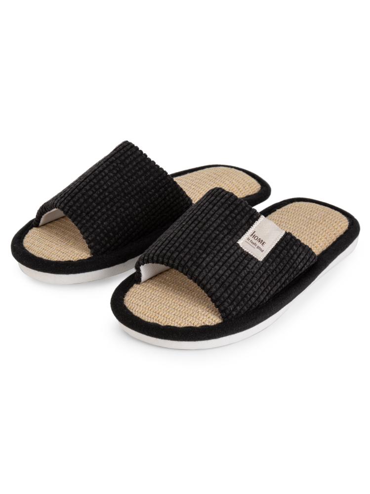 Тапочки домашние 42-43 мужские открытые черный полиэстер/ПВХ