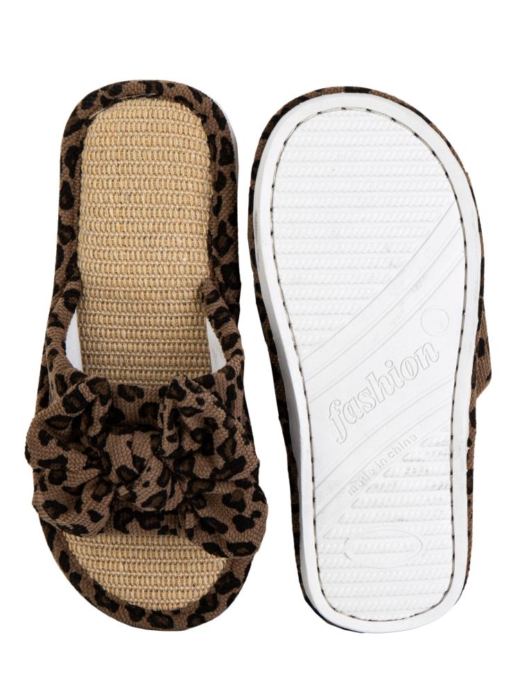 Тапочки домашние 36-37женские открытые леопардовый бант коричневый полиэстер/ПВХ