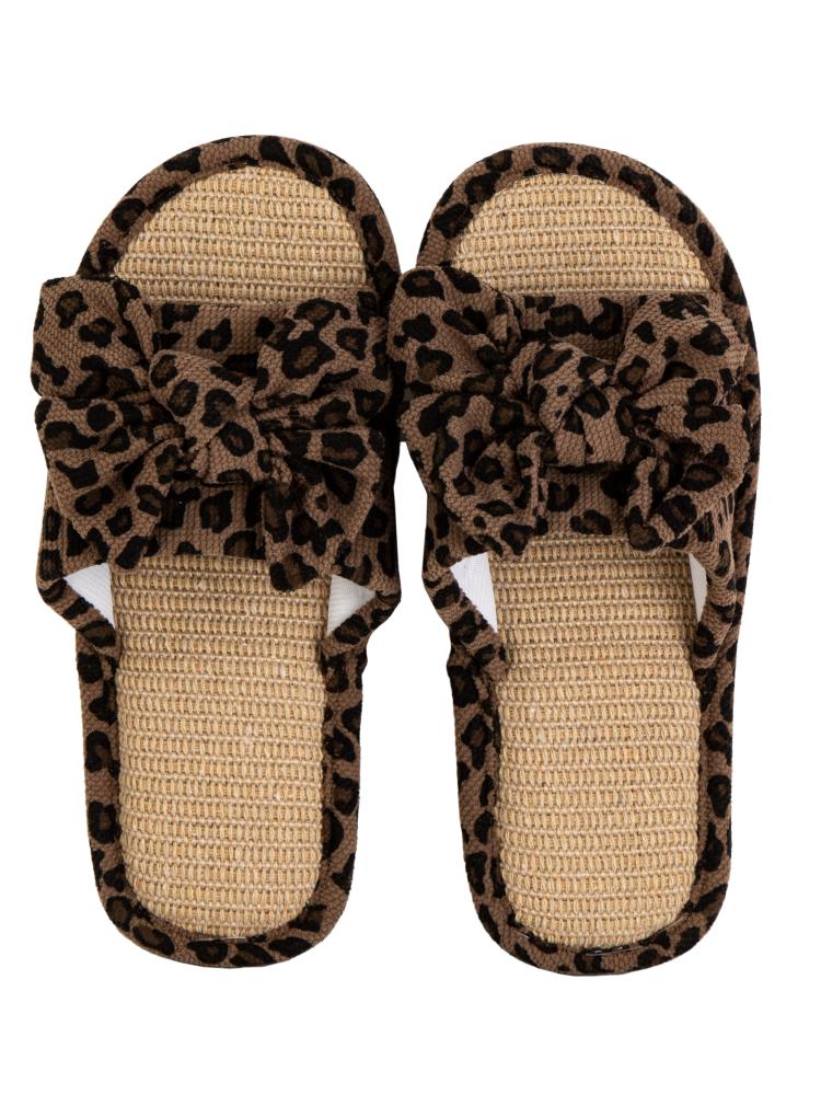Тапочки домашние 40-41женские открытые леопардовый бант коричневый полиэстер/ПВХ