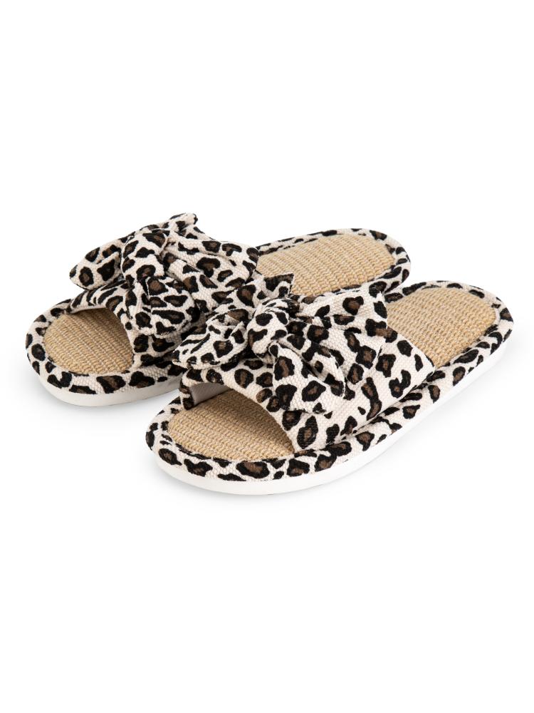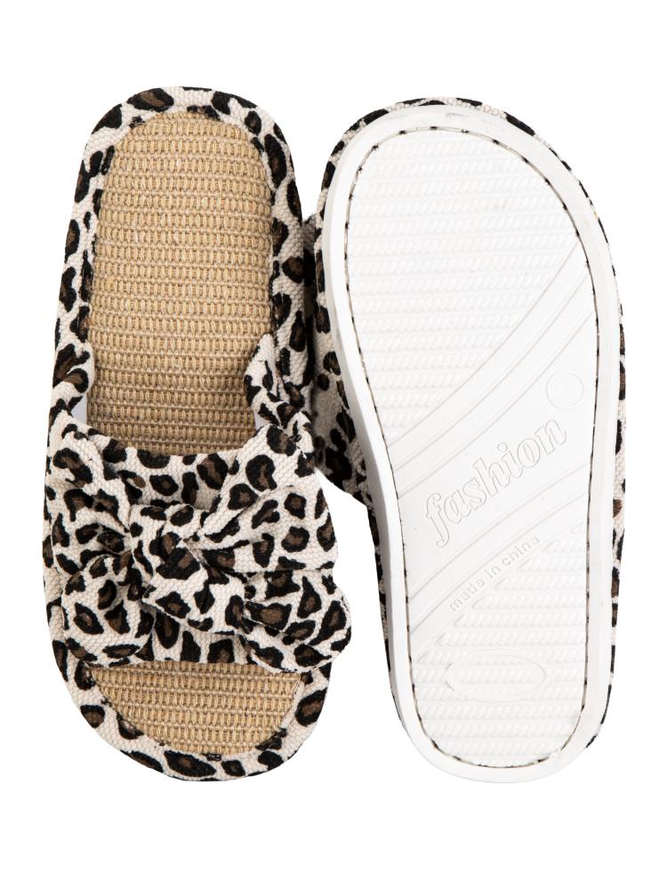 Тапочки домашние 38-39 женские открытые леопардовый бант молочный полиэстер/ПВХ