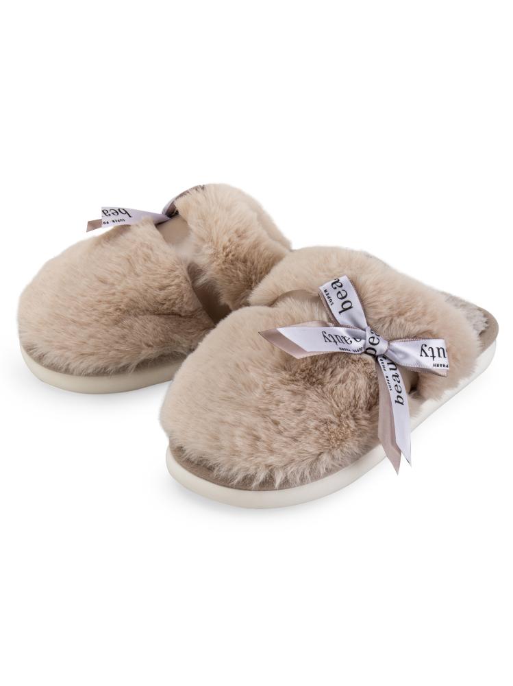 Тапочки домашние 40-41 женские меховые атласный бант бежевый полиэстер/ПВХ