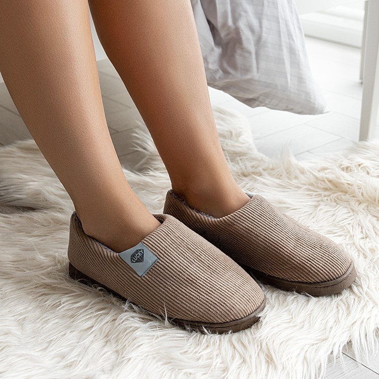 Туфли домашние-тапки р.40-41 LUCKY с пяткой бежевый вельвет полиэстер