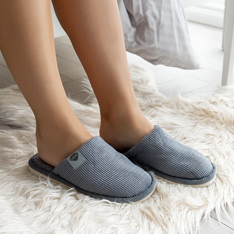 Туфли домашние-тапки р.40-41 LUCKY Вельвет серый полиэстер