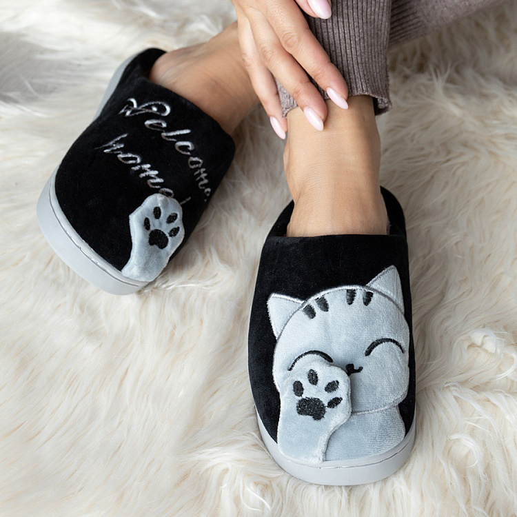 Туфли домашние-тапки р.36-37 LUCKY Коты черный/серый полиэстер