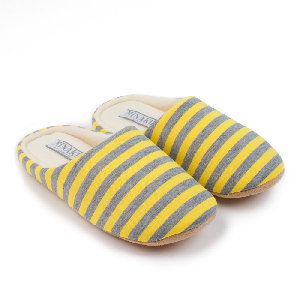 Тапочки женские MINAKU закрытого типа, классического дизайна - с открытой пяткой, выполненные в полоску желто-серого цвета. Верх - мягкая трикотажная ткань.Стелька не съемная, с внутренним мягким наполнителем. обеспечивает удобное положение стопы. Комфортные домашние тапочки из мягких материалов, подарят ногам особую мягкость прикосновений и теплоту.