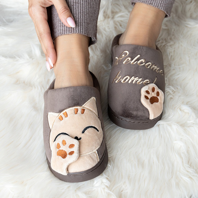 Тапочки домашние Коты выполнены из качественного прочного материала с приятной и теплой подкладкой с внутренней стороны. Подошва бесшумная и мягкая с антискользящими элементами. Аппликация в форме мордочки кошки создаст уютное домашнее настроение. Размерный ряд соответствует российскому размерному ряду.