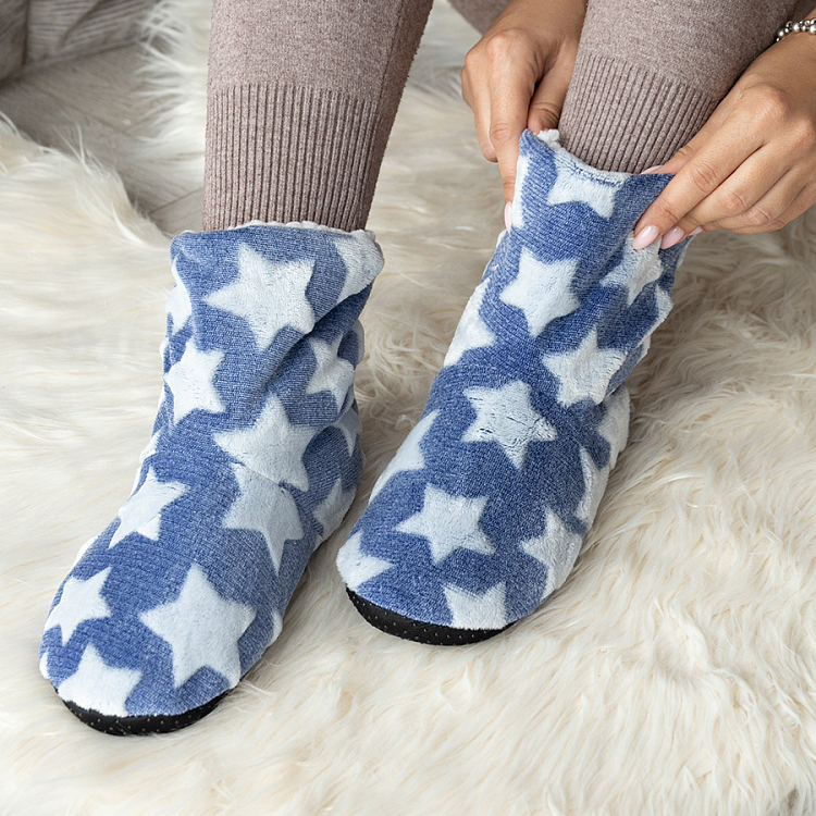Туфли домашние-тапки р.35-37 LUCKY Угги Звезды синий полиэстер