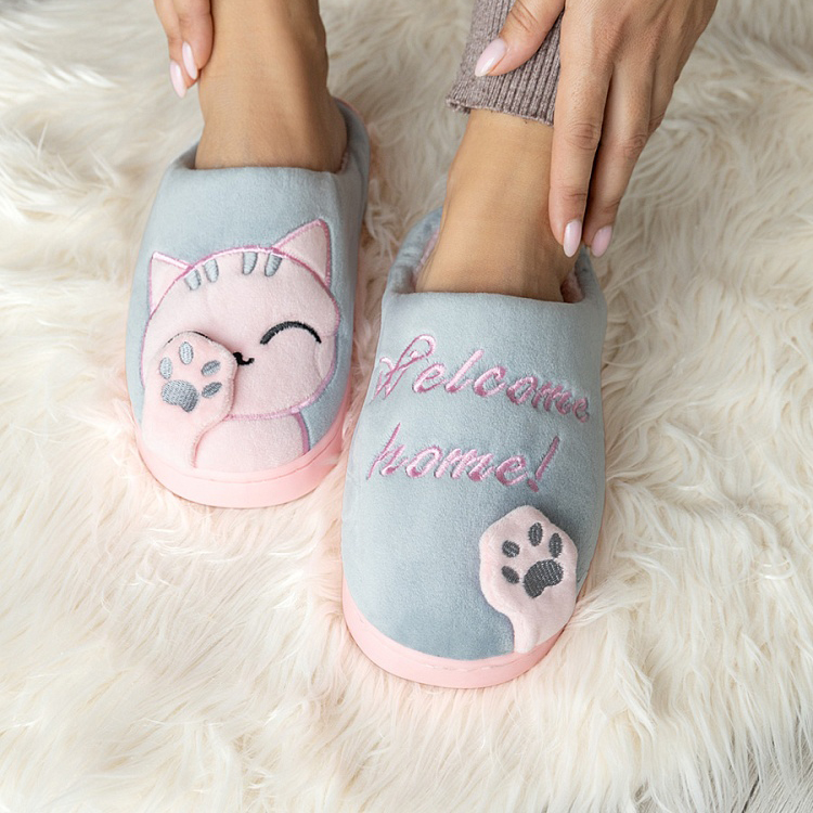 Тапочки домашние Коты выполнены из качественного прочного материала с приятной и теплой подкладкой с внутренней стороны. Подошва бесшумная и мягкая с антискользящими элементами. Аппликация в форме мордочки кошки создаст уютное домашнее настроение. Размерный ряд соответствует российскому размерному ряду.