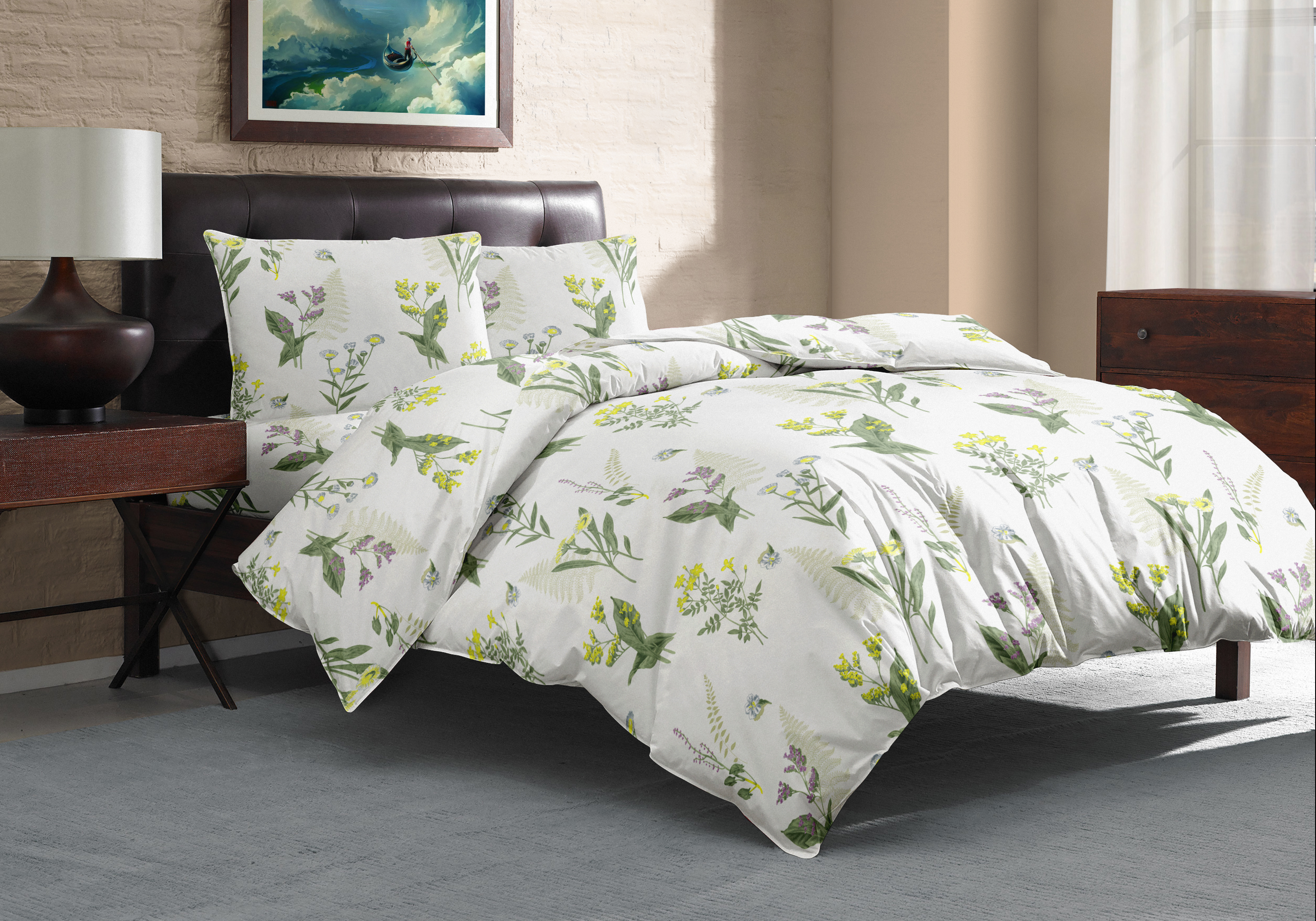 Комплект постельного белья 1,5сп LUCKY (пододеяльник 145х215см, простынь 150х220см, наволочки 70х70см-1шт) Полевые травы поплин хлопок 100%