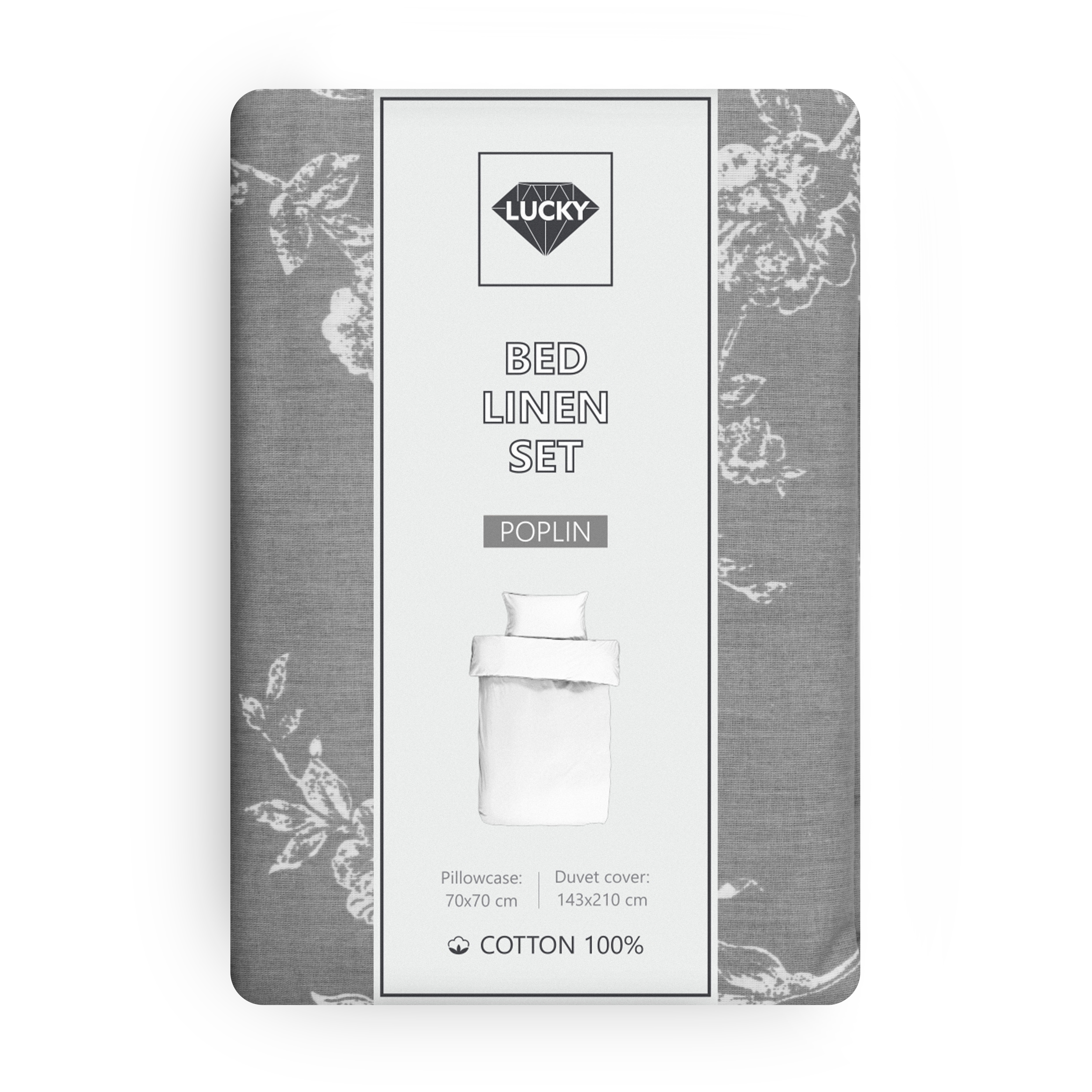 Комплект постельного белья 1,5сп LUCKY (пододеяльник, наволочка 70х70см-1шт) цветок темно-серый хлопок 100%