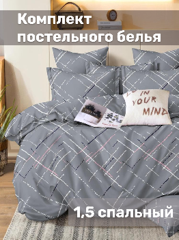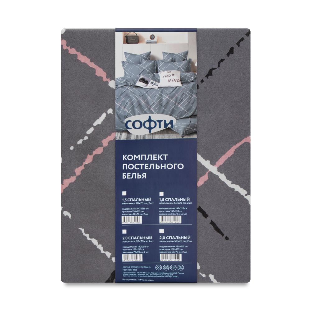 Комплект постельного белья 1,5сп СОФТИ (пододеяльник 147х215см, простыня 150х214см, наволочка 70х70см-2шт) Геометрия серый полиэстер/хлопок