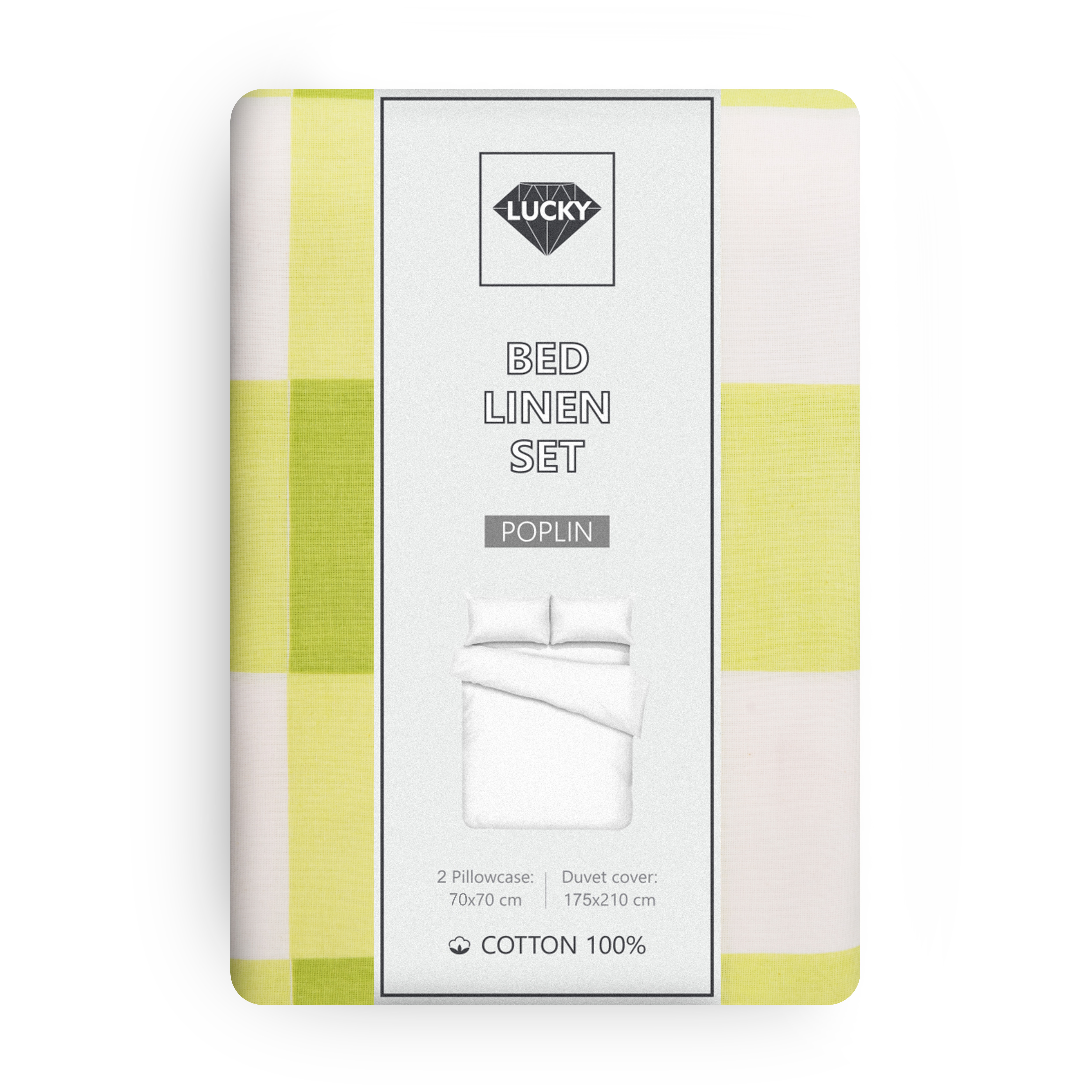 Комплект постельного белья 2,0сп LUCKY (пододеяльник, наволочки 70х70см-2шт) клетка фисташковый хлопок 100%