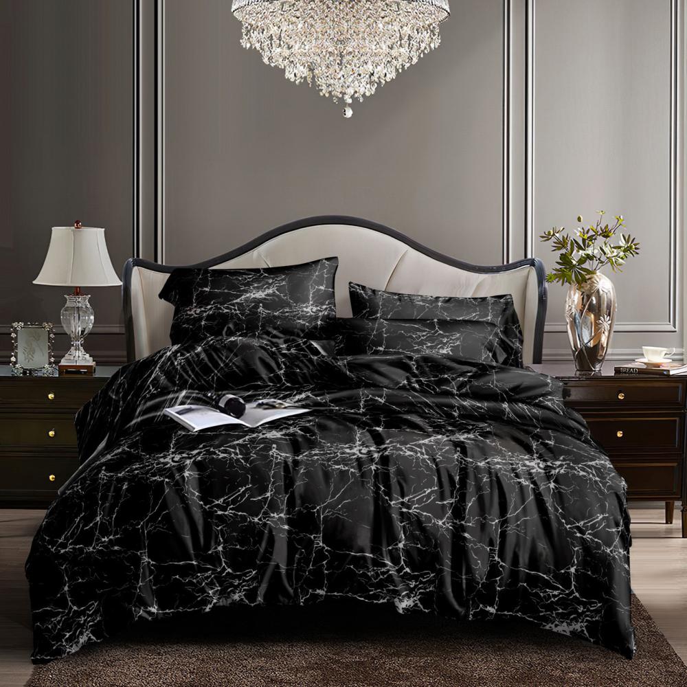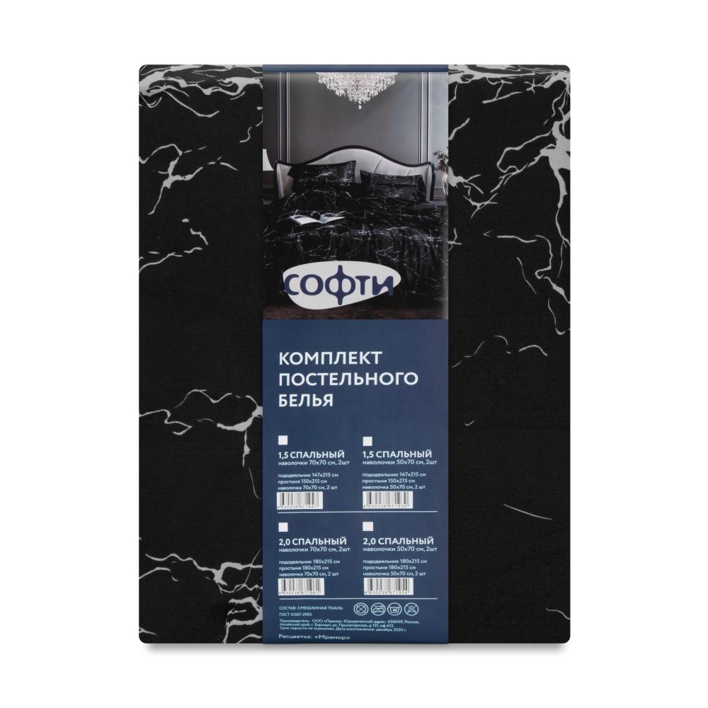 Комплект постельного белья 2,0сп СОФТИ (пододеяльник 180х218см, простыня 182х220см, наволочка 70х70см-2шт) Мрамор черный полиэстер/хлопок