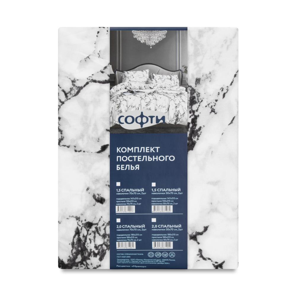 Комплект постельного белья 2,0сп СОФТИ (пододеяльник 180х218см, простыня 182х220см, наволочка 70х70см-2шт) Мрамор полиэстер/хлопок