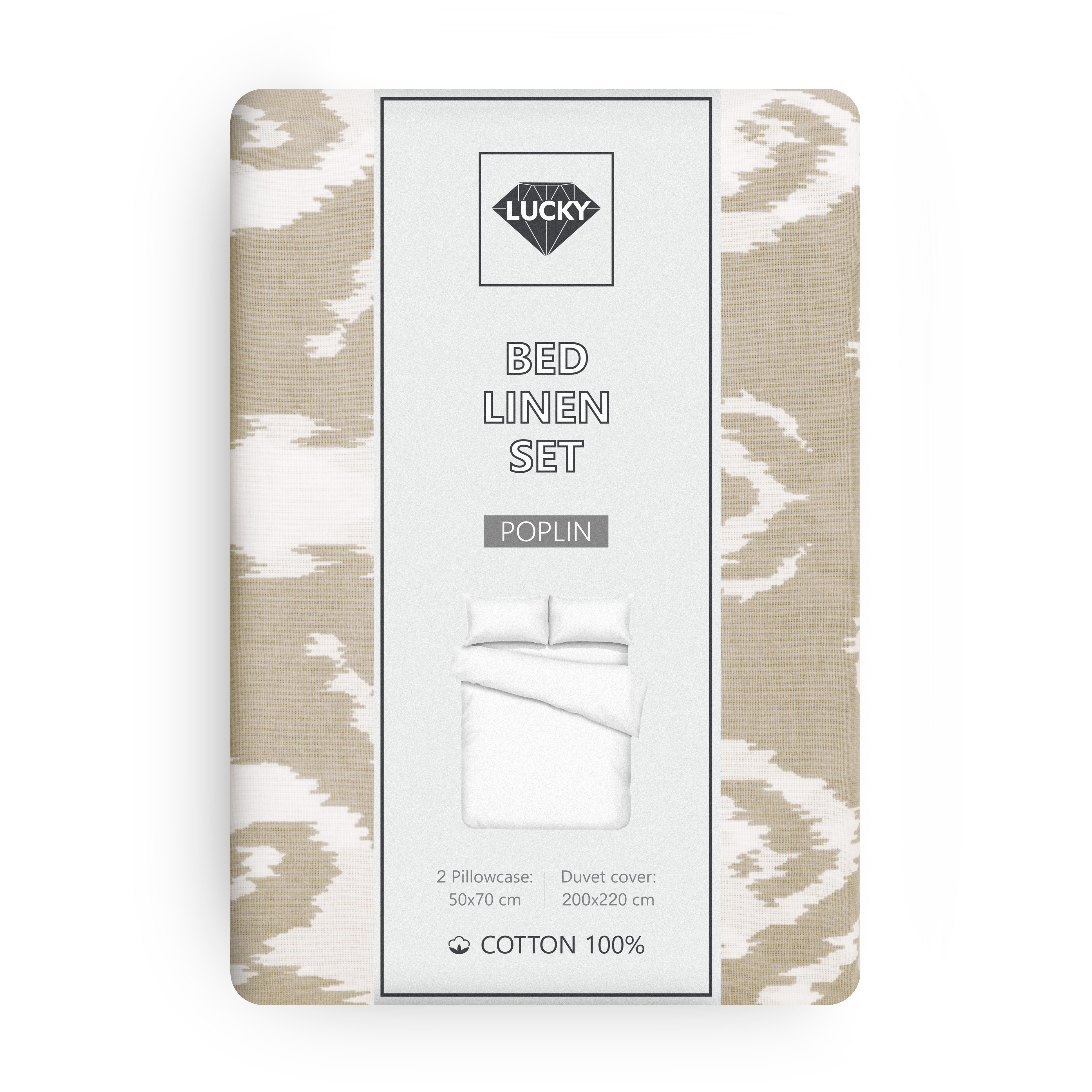 Комплект постельного белья Евро LUCKY АЗИЯ (пододеяльник, наволочки 50х70см-2шт) бежевый поплин хлопок-100%