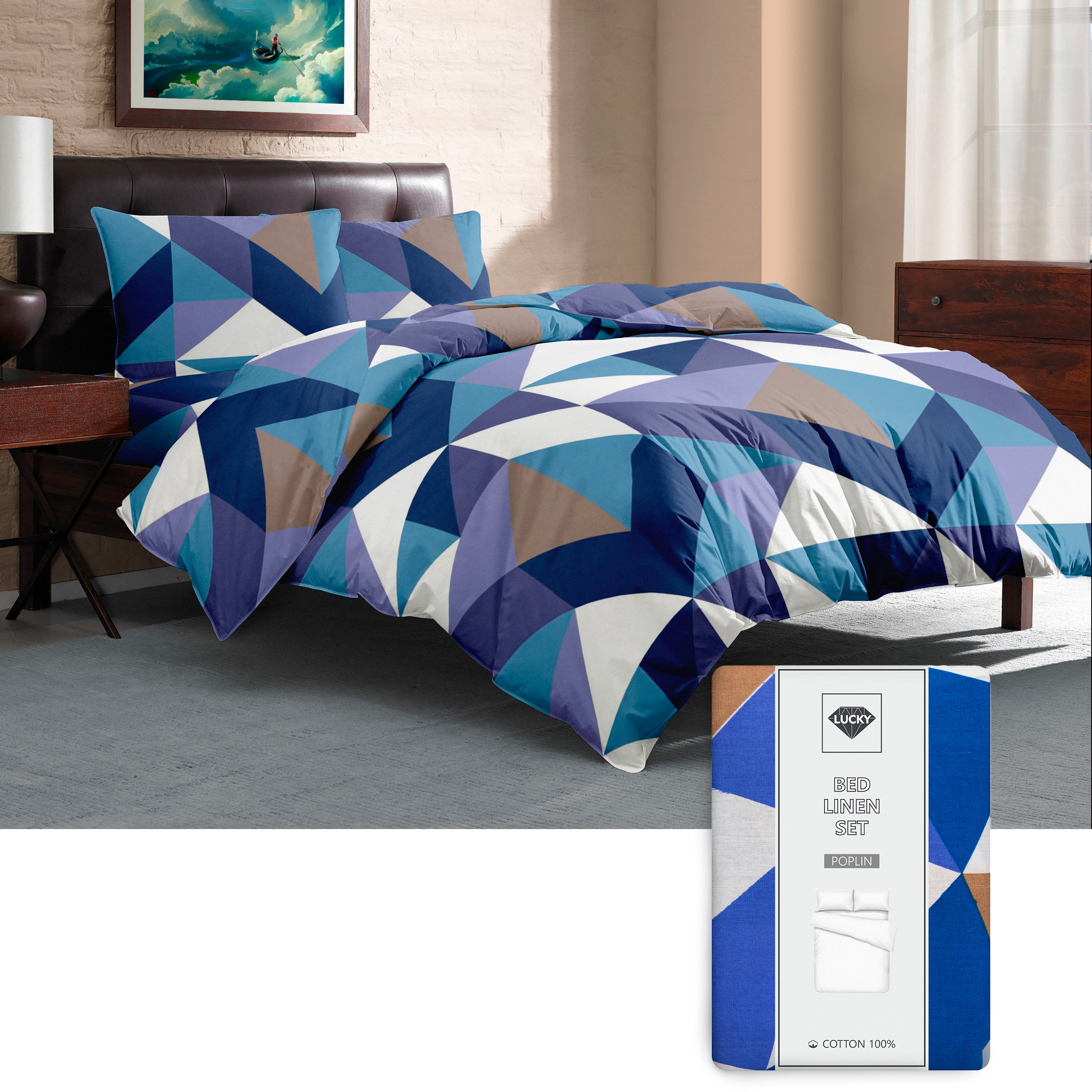 Комплект постельного белья Евро LUCKY (пододеяльник, наволочки 70х70см-2шт) геометрия цветная хлопок 100%