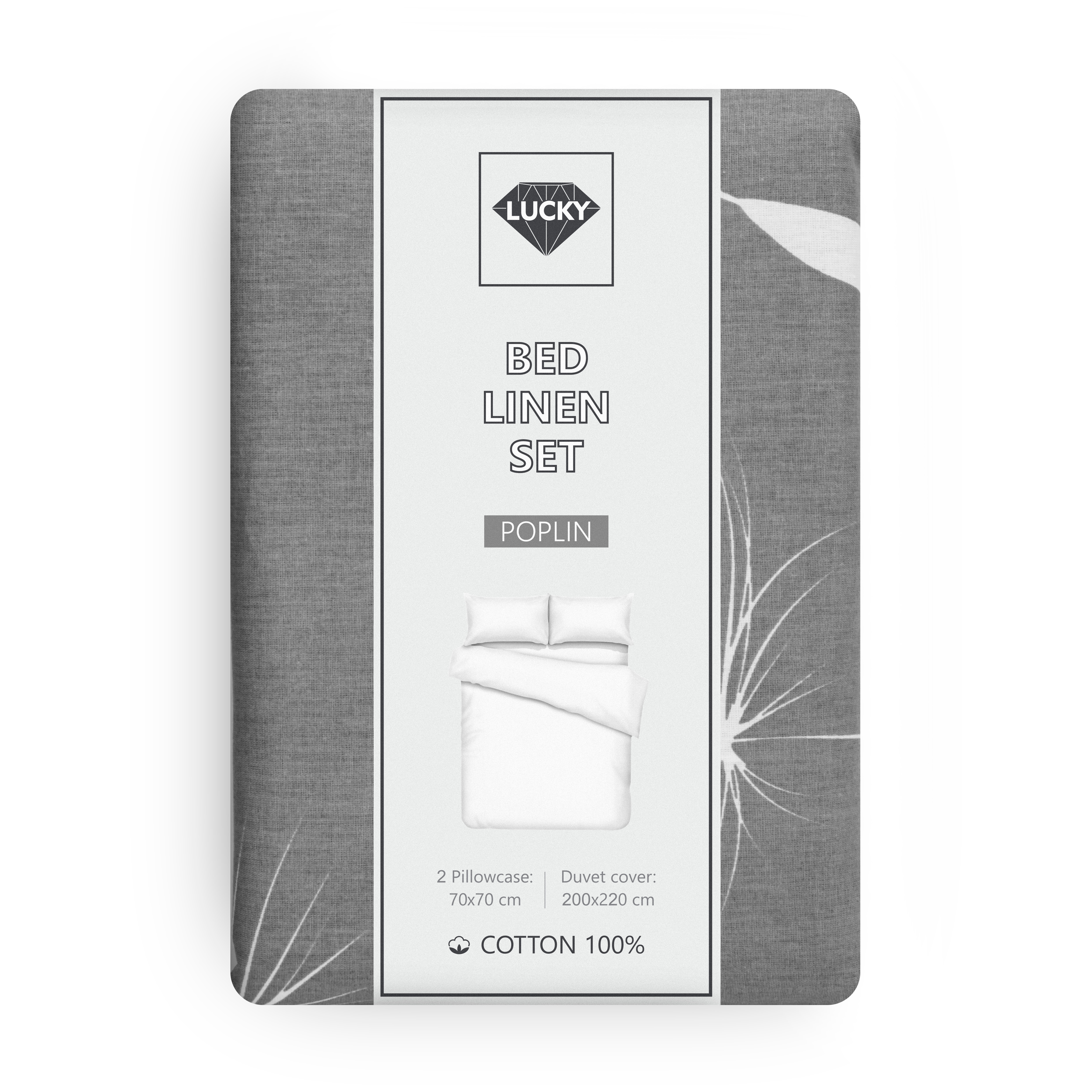 Комплект постельного белья Евро LUCKY (пододеяльник, наволочки 70х70см-2шт) ботаника темно серый хлопок 100%