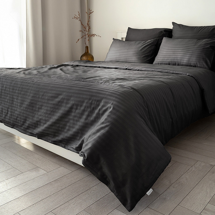 Пододеяльник 145x210см DE'NASTIA темно-серый страйп-сатин 1см хлопок 100%