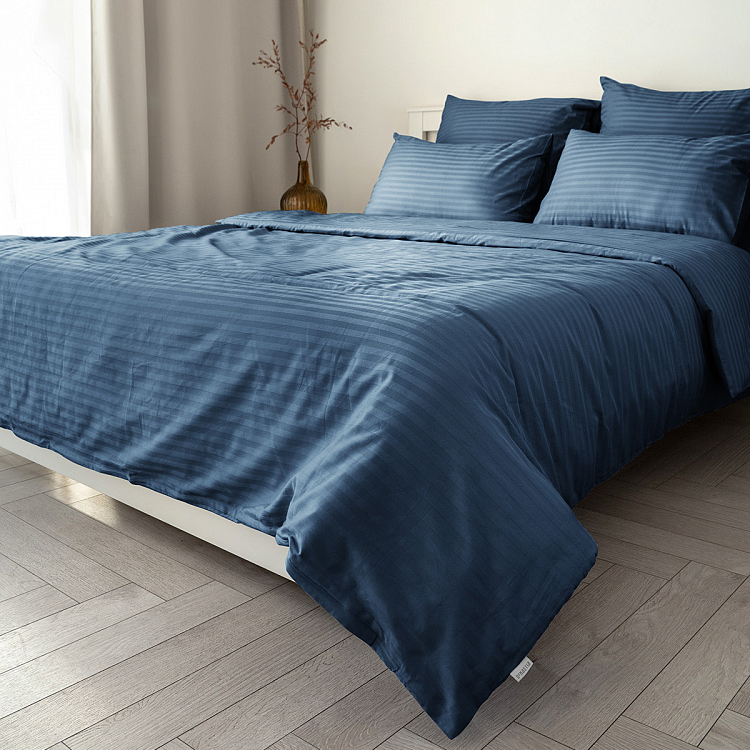 Пододеяльник 175x210см DE'NASTIA синий страйп-сатин 1см хлопок 100%
