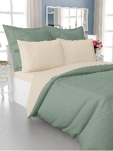 Пододеяльник 200x220см DE'NASTIA 2сторонний молочный/зеленый 100%хб сатин C010825