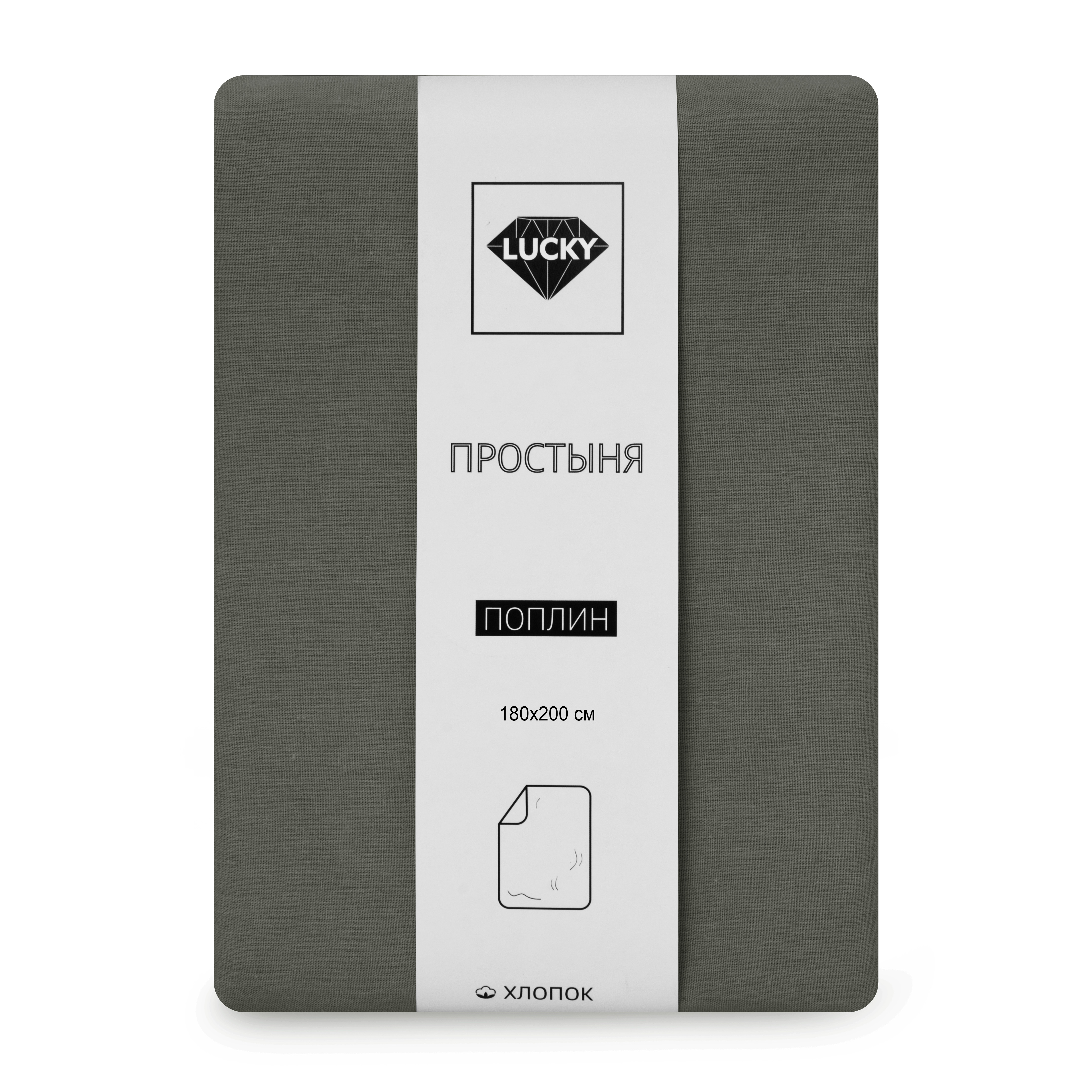 Простыня 180х200см LUCKY таупе-серый поплин хлопок 100%