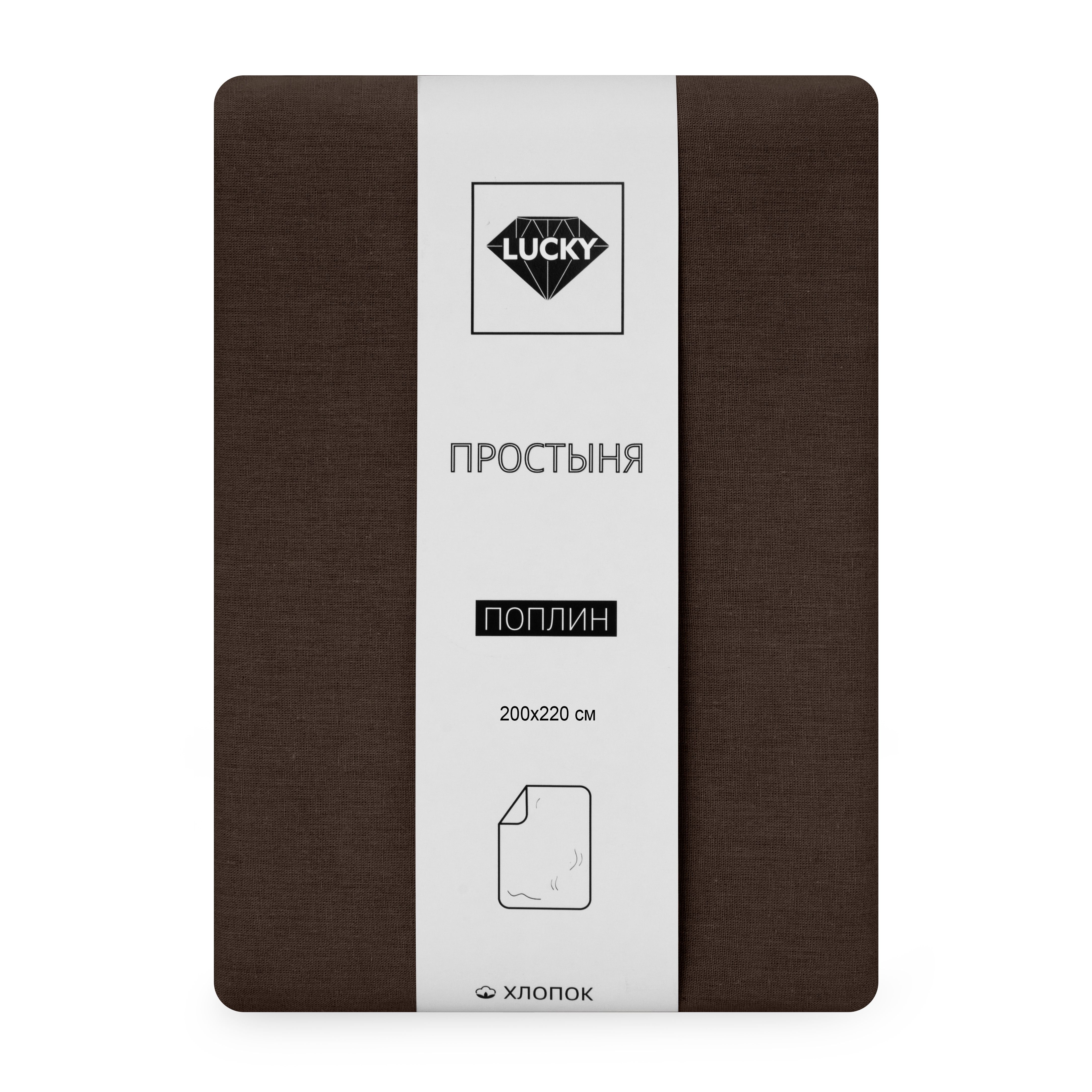 Простыня 200х220см LUCKY шоколад поплин хлопок 100%