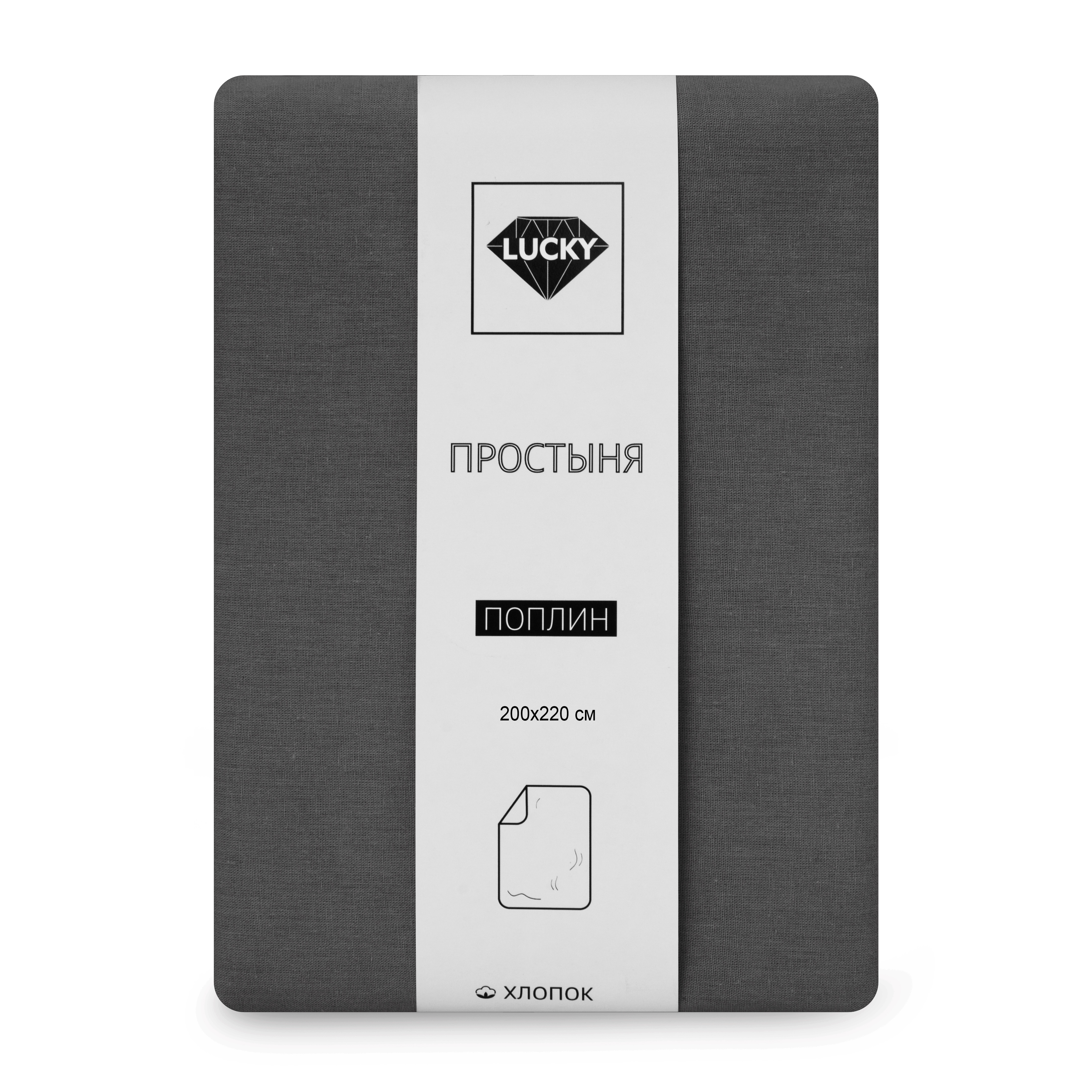Простыня 200х220см LUCKY графит поплин хлопок 100%