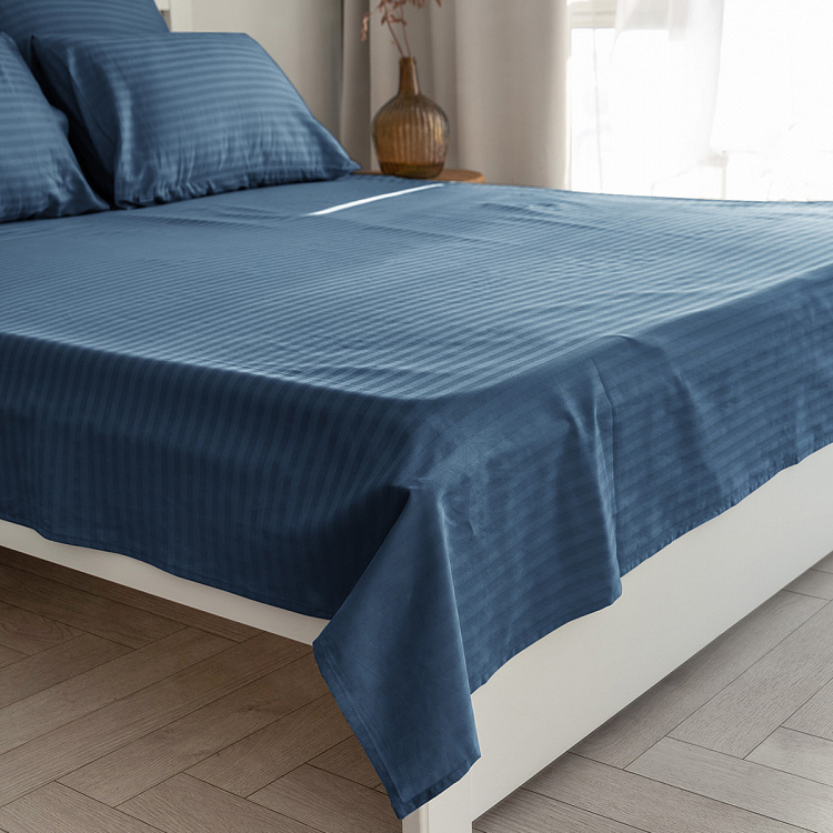 Проcтыня 250x240см DE'NASTIA синий страйп-сатин 1см хлопок 100%