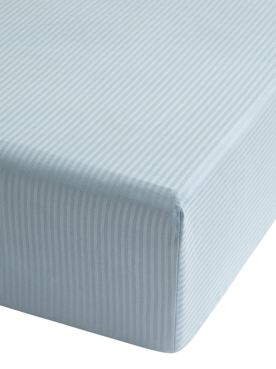 Проcтыня на резинке 160x200+25см DE'NASTIA голубой сатин/страйп 3мм хлопок 100%
