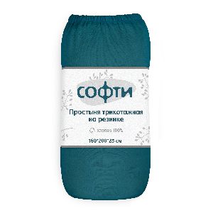 Простыня трикотажная на резинке 160х200х25см СОФТИ сине-зеленый хлопок 100%
