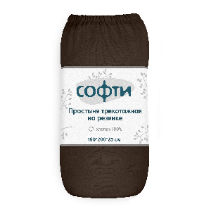 Простыня трикотажная на резинке 160х200х25см СОФТИ шоколад хлопок 100%