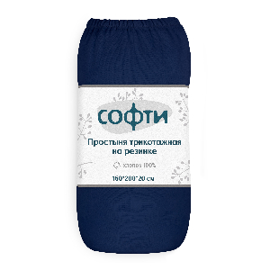 Простыня трикотажная на резинке 160х200х25см СОФТИ индиго хлопок 100%